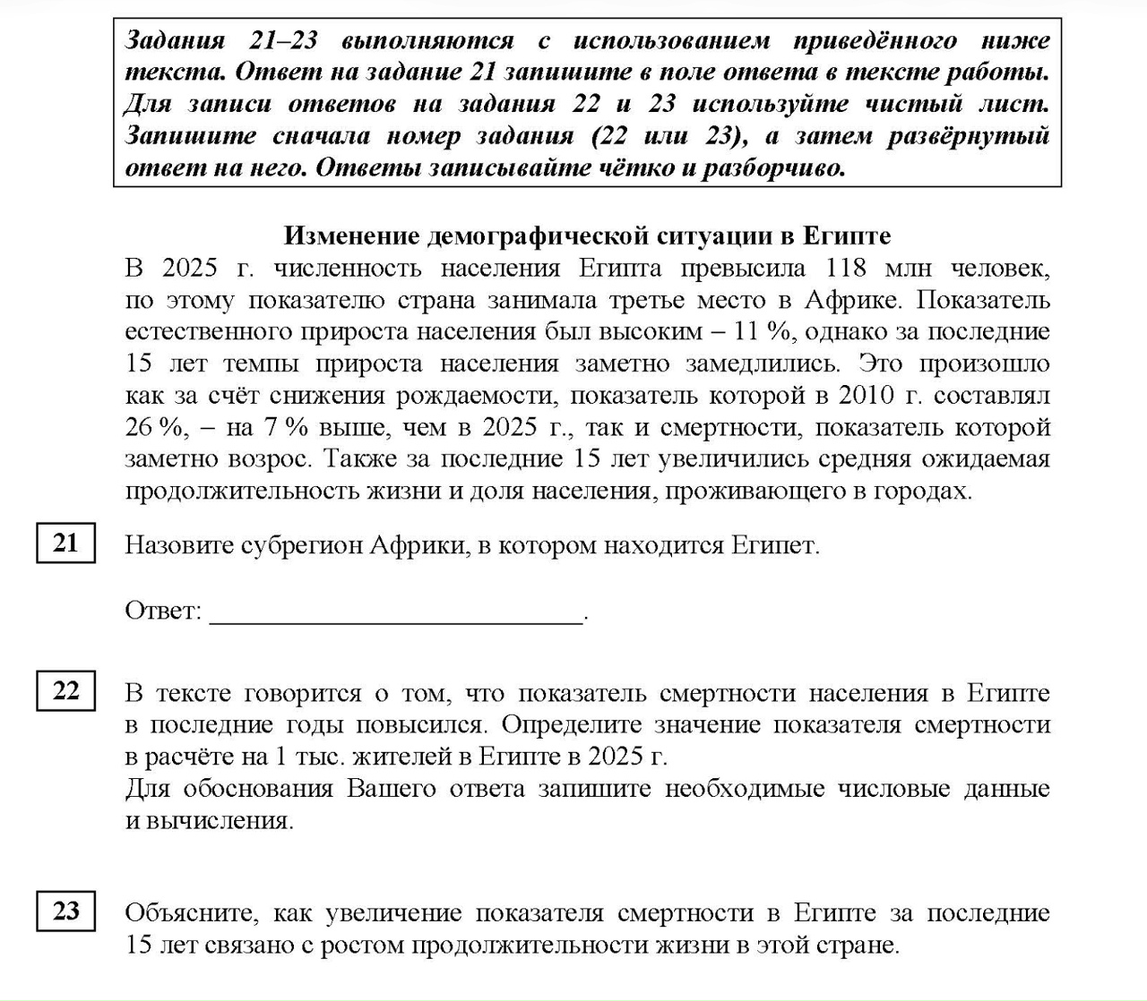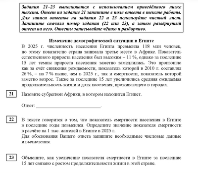 Египет и демографические парадоксы: Разбираем задания 21–23