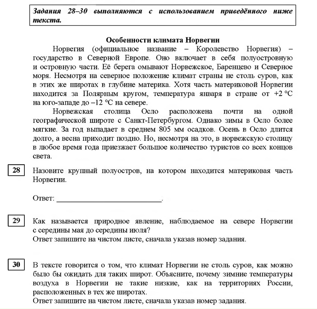 Разбираем задания 28–30 из последнего стаграда — блок с текстом про климат Норвегии. Кажется легко? А вот и нет — именно здесь теряют баллы те, кто не читает текст внимательно и забывает базовую географию.