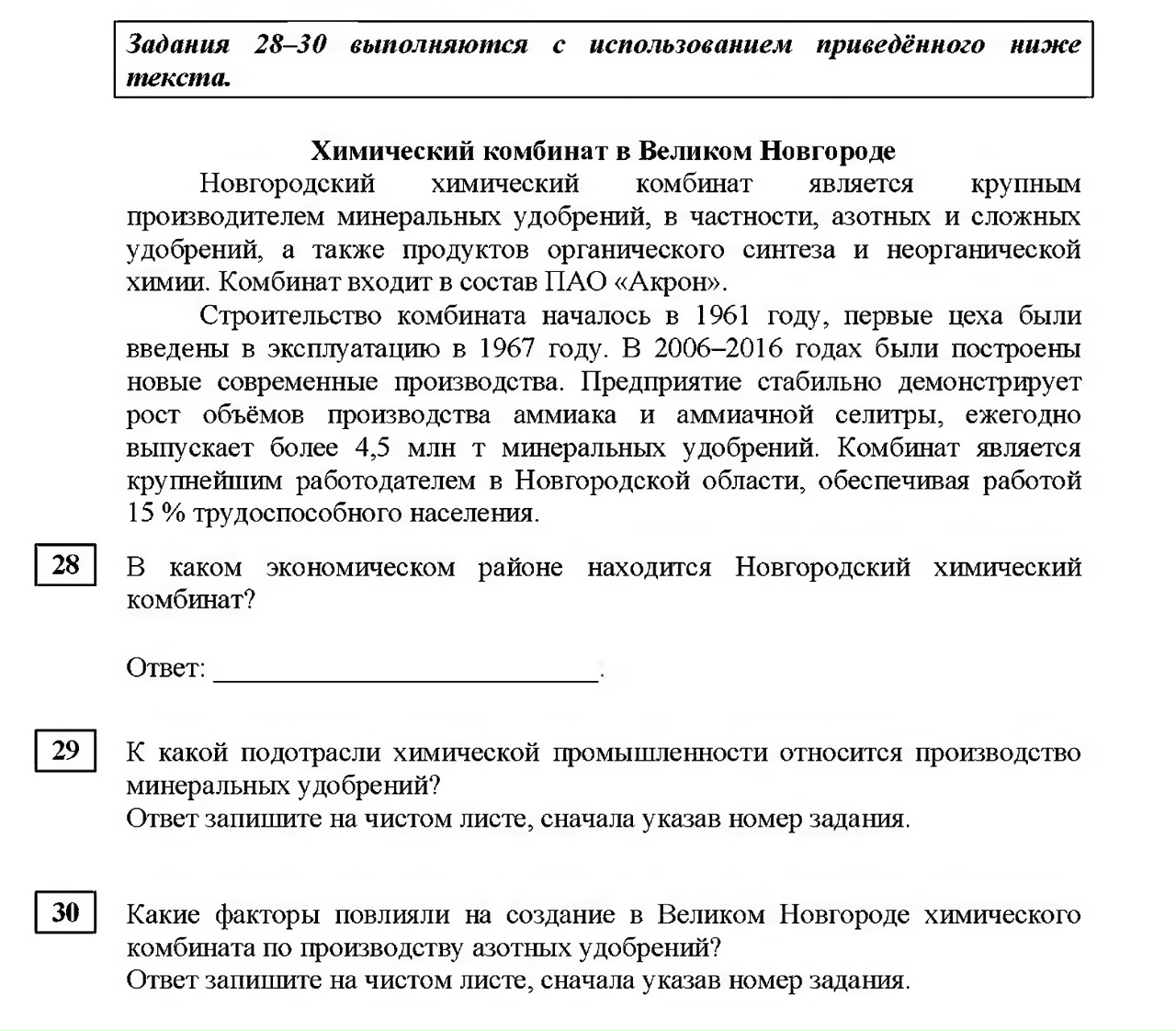 Вопрос: В каком экономическом районе находится Новгородский химический комбинат?