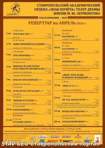 Репертуар на апрель Ставропольского театра драмы