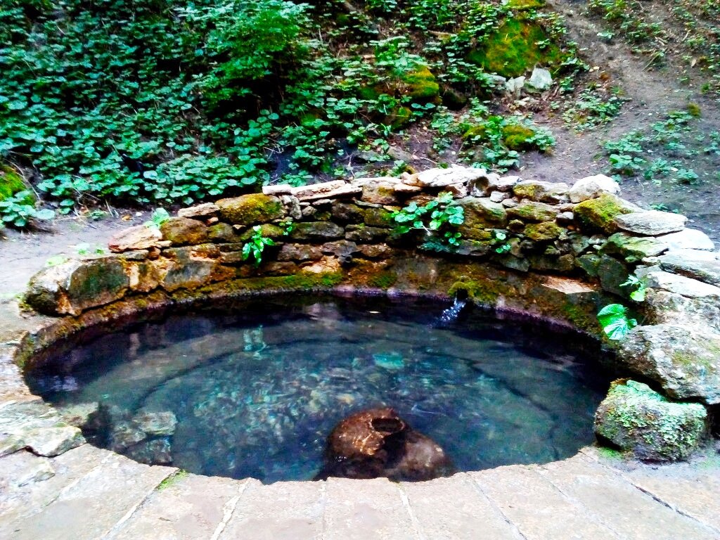 Родник Чаша (Круглый) находится в лесном массиве урочища и назван «Чаша» из-за характерного шума воды при выходе на поверхность. Источник оборудован для купания и защищён от повреждений. Вода поступает в каменный бассейн глубиной 1,5 метра через трубу. Температура воды примерно +10°С, она чистая, прозрачная и без запаха. Добраться можно, пройдя мост от родника Корыта (примерно 20 минут пешком), затем повернуть налево и идти по просеке до выраженной просеки справа. В качестве ориентира можно использовать Заячью поляну; в 1 км от неё, если идти по просеке направо, находится Чаша. Координаты источника: 45° 0' 19.64" N, 41° 57' 15.63" E.