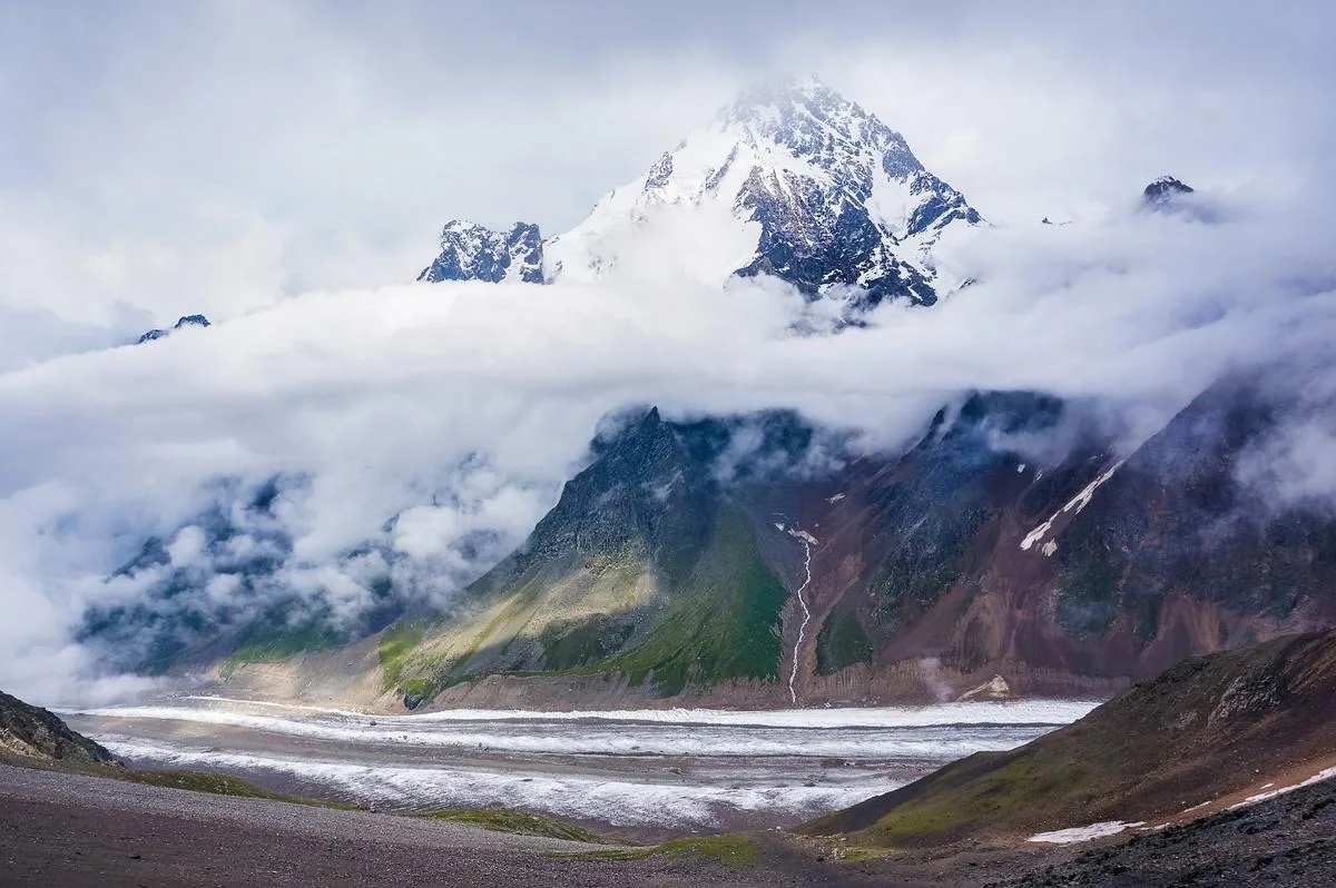 Все привыкли: Эльбрус — самая высокая точка Кавказа. Но если быть точными, это не совсем так. Эльбрус — это вулкан. Потухший, огромный, красивый, но всё же вулканический конус. А вот если говорить именно о горах в классическом понимании — с хребтами, скальными стенами и альпинистской сложностью, — здесь лидер другой. И это Дыхтау. 5204 метра горной суровости. Без пологих маршрутов, без туристических канаток — только лед и скалы. Это вторая по высоте вершина Кавказа, но первая по уровню сложности. Дыхтау находится в Безенги — месте, которое альпинисты называют «русскими Гималаями». Ее острые, зубчатые вершины выглядят так, будто их вырезали ножом. Не зря название переводят как «крутая» или «зубастая» гора. И в отличие от Эльбруса, сюда не поднимаются на экскурсию. Здесь проверяют себя. Маршруты идут от 4А до 5 категории сложности. Лавины, камнепады, ледовые участки здесь постоянны. Именно поэтому Дыхтау входит в список вершин для звания «Снежный барс России».