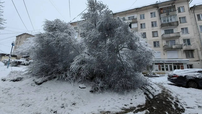 Сильный снегопад повалил четыре дерева в Кисловодске | |