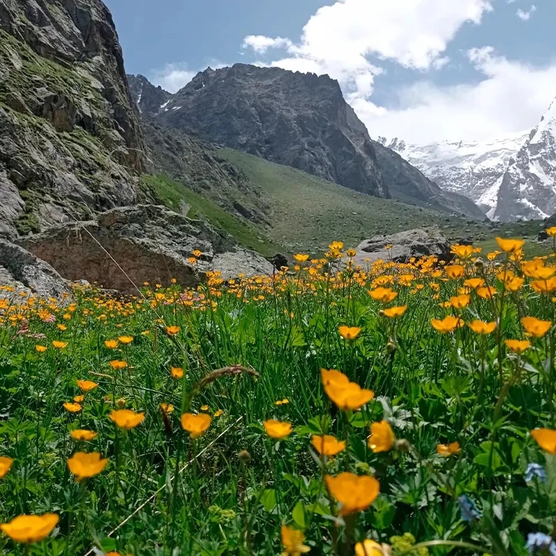 Зато для обычных туристов интересна не столько вершина, сколько пространство у её подножия. В Мижиргийском ущелье находится большая поляна, где останавливаются альпинисты и путешественники. Летом здесь цветут альпийские травы, текут ледниковые ручьи и открываются виды на пятитысячники — Мижирги и пик Пушкина.