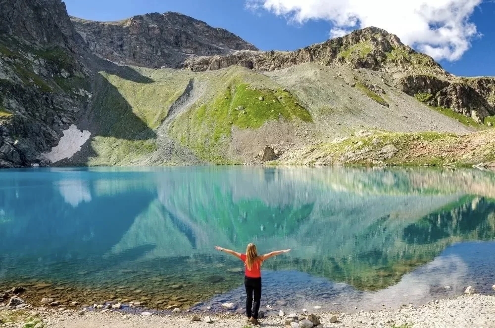 Они лежат почти на 3000 метрах среди каменных склонов и альпийских лугов Архыза. Здесь воздух уже другой — холоднее, чище, и будто немного тише. А впереди три озера, и каждое со своим характером и цветом. Софийские озёра называют «голубыми глазами» Архыза, но на деле оттенков больше. Одно ярко-голубое, второе уходит в бирюзу, а третье кажется почти черным, как отполированный камень. Цвет меняется в зависимости от света и времени года, и каждый раз выглядит по-новому. Вода ледниковая, даже летом прогревается максимум до +10…+12°C. Купаться решаются единицы. Маршрут сюда длинный и непростой: сначала долины и луга, потом каменные осыпи и подъем к перевалу Иркиз. Но именно там открывается первый вид на озера, и становится понятно, ради чего был весь этот путь. Что важно знать: Высота: 2830 м Расстояние: 12–13 км Время в пути туда-обратно: 8–9 часов Перепад высот: 2000–2890 м Стоимость: бесплатно Сезон: июнь–октябрь