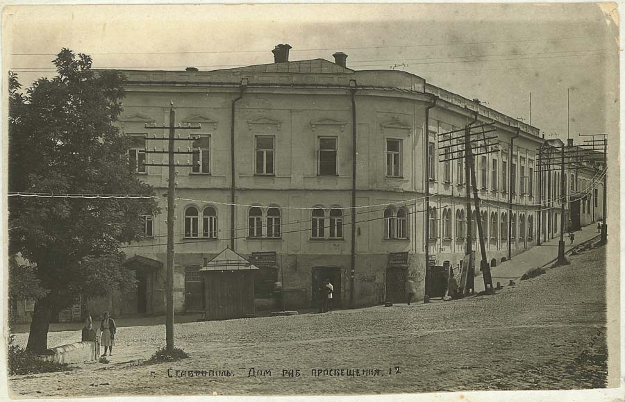 Была когда-то у Николаевского проспекта и южная часть, существующая до сих пор - она начиналась от большого трёхэтажного здания, занимавшего весь угол с Театральной улицей (сегодня-проспект Октябрьской революции). Место это принадлежало ставропольскому купцу 1-й гильдии Ивану Ганиловскому, как и вся противоположная территория. В 50-х г. г. XIX в. место это у купца Ганиловского покупает пятигорский купец 1-й гильдии Аркадий Васильев, который строит здесь самый современный по тем временам дом, состоявший со стороны Николаевского проспекта из трёх этажей, а со стороны улицы Театральной - из двух. Здесь нужно отметить, что с 1864 года окружные суды России стали основным звеном общей судебной системы. Благодаря реформированию той системы Александром II суд стал независимым от администрации губерний, он стал гласным, в решении дел принимали участие не только судьи, но и выбираемые населением гласные из разных сословий. Во главе Ставропольского окружного суда стал статский советник Матвей Пантелеевич Штукин. Открытие суда ознаменовалось в Ставрополе молебном, народными гуляниями в Воронцовской роще, фейерверком. В самом здании Окружного суда вплоть до революции проходили шумные судебные слушанья, собиравшие массу публики и газетчиков. Кстати, и в советское время часть здания занимали судейские конторы. В начале 70-х годов XIX века здание приобрёл ставропольский банкир и предприниматель Макар Попов, владелец банка на пересечении улиц Воронцовской и Александровской ( ныне- пр-та Октябрьской революции и улицы Дзержинского). Верхний этаж по-прежнему оставался Окружным судом, а нижние этажи дома он сдавал под магазины, бары, кафе. Так, в начале XX века в западном крыле здания обосновался известный ресторан Исая Григорьевича Арутюнова "Арарат". Часы "Hy Moser & K". 19 век. Угловая и восточная части нижнего этажа были заняты сразу несколькими небольшими магазинчиками. Это часовой магазин купца и ювелира П. Яременко, где можно было приобрести ручные, карманные, каминные и настенные часы марок "Анкер", "Зенитъ", "Мозер и К", "Омега", в простых, серебряных и золотых корпусах, а также в перстнях, кулонах, медальонах и пр. Здесь же имелись разнообразные оптические товары, начиная с очков, пенсне и лорнетов из кости и металлов, в том числе драгоценных, и кончая цейсовскими биноклями и подзорными трубами. Рядом распологался магазин не менее известного ставропольского купца Никиты Мокина, род которого владел в Ставрополе большим количеством магазинов, в том числе и в Гостиных рядах. В этом магагзине горожанам предлагалась самая разнообразная продукция - в том числе и стиральные машины, тогда именуемые "паромойками", - ИОНА. Здесь имелись стиральные и гладильные доски, угольные и печные утюги, дубовые каталки, бельевые корзины, платяные и шляпные коробки, вешалки. зеркала и пр. Был здесь и винный погребок, который занимал огромный подвал дома Попова.Хозяином его был Иван Ахпателов, имевший свои виноградники в экономии "Общество "Кахетия". Имелся здесь и громадный набор крымских вин, в том числе марок "Шабан Турецкого". "Сотернъ", "Массандра", "Ай-Даниль", "Мадера", "Мускатъ", "Ливадия" и пр. А также французское шампанское "Монополь", "Мумъ", "Редеръ". ликеры "Куонтро", "Редемптимъ", коньяки бургундские, бордоские. рейнские. И, наконец, обычные французские вина "Гривъ", "Барзакъ", "Шато"
