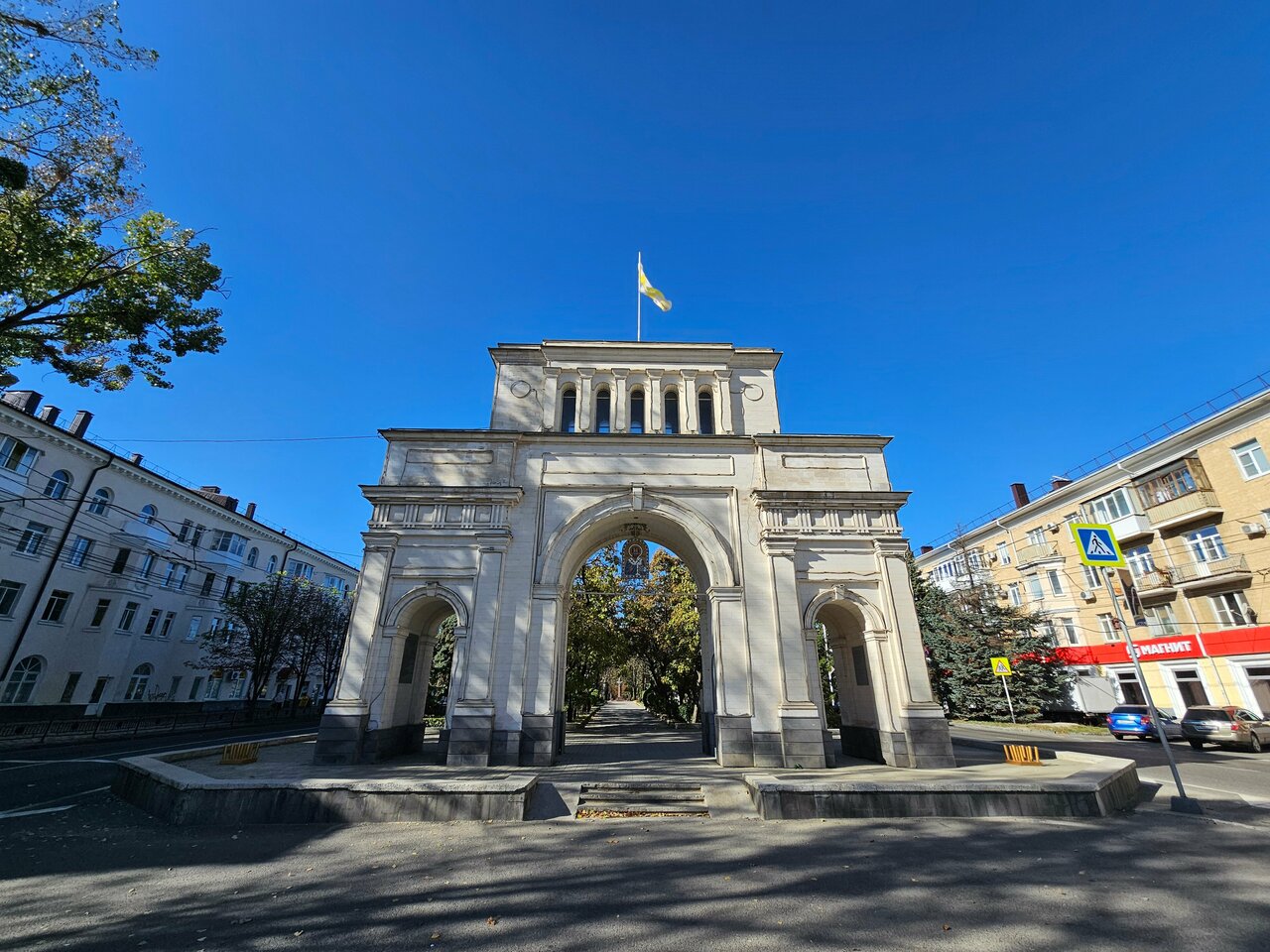 Местоположение арки немного сместили на восток: Триумфальные ворота возвели неподалёку от пересечения бульвара с улицей Войтика (разница составила около ста метров). На месте исторических ворот установили бюст А. П. Ермолову, который ограничивает бульвар имени генерала Ермолова с востока.