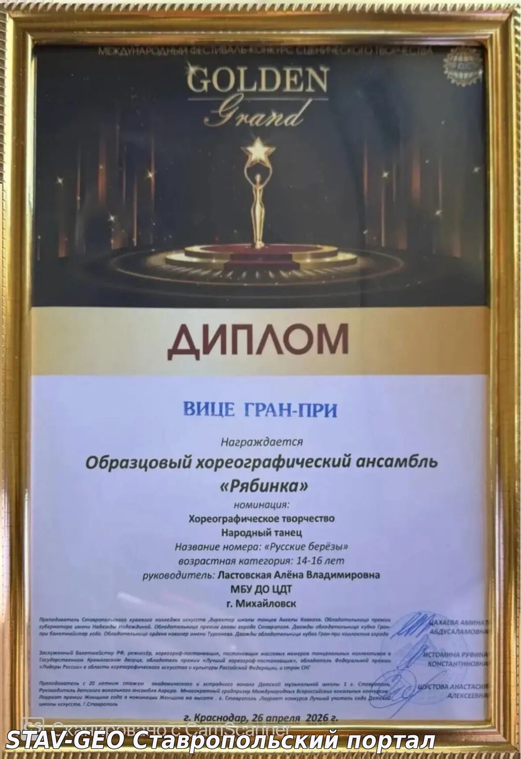 У МБОУ СОШ №20 появился повод для гордости: ученицы школы Анастасия Рыбянцева, Кристина Рыбянцева и Екатерина Демьянова, выступая в составе образцового хореографического ансамбля «Рябинка» (ЦДТ г. Михайловск), успешно представили Ставропольский край на международном фестивале-конкурсе сценического творчества «Golden Grand» в Краснодаре. По итогам конкурса коллектив вернулся с внушительным багажом наград: лауреат III степени, лауреат I степени и вице-Гран-при конкурса. Все номера отличались по настроению и выразительным решениям — каждый показал характер, дисциплину и высокий уровень подготовки ансамбля. Какие номера принесли победыХоровод «Гжель» получил звание лауреата III степени. Как отмечают организаторы и зрители, постановка запомнилась романтичной историей, изяществом движений и глубиной исполнения. Номер «Хорошее настроение» был удостоен лауреата I степени. Его представили самые юные участники ансамбля: маленькие артисты сумели передать искренность, активность и зажигательность. «Шоколадная фабрика» также стала лауреатом I степени. Постановка, по словам очевидцев, буквально оживила зал: под заводную музыку зрители активно поддерживали выступающих, а сюрпризный момент с огромным леденцом вызвал искренний восторг и улыбки. «Славянские сказания» покорили атмосферой сказочности и бережным отношением к традициям. Номер заворожил зал, подчеркнув фольклорный дух и выразительность сценического образа. Особым для коллектива стал номер «Русские берёзы» — он принес вице-Гран-при. Постановка впечатлила жюри и зрителей созданным образом русской души: народные узоры и виртуозная техника сложились в цельное сценическое впечатление. Отдельные слова благодарности выражены руководителю ансамбля Ластовской Алене Владимировне. В школе отмечают, что профессионализм, педагогический талант и вдохновение помогают участникам добиваться высоких результатов и выходить на новый уровень мастерства. От всей души поздравляем Анастасию, Кристину, Екатерину и весь коллектив «Рябинки» с блестящим выступлением. Желаем ансамблю и его участникам не останавливаться на достигнутом, продолжать творческий полёт, находить новые сценические идеи и добиваться громких побед. | |