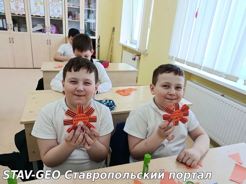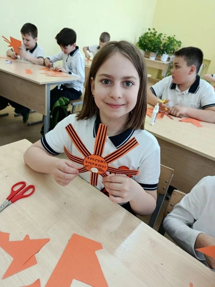 Ученики 2 «Е» класса сделали Георгиевские ленточки к Дню Победы | |