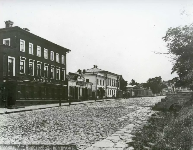 Сразу за бывшим домом губернатора находилось усадебное место с небольшим домом подполковника Гавриила Андреевича Ильинского, позже продавшего дом с частью своего усадебного места Николаю Васильевичу Майеру. В 40-х годах дом этот перешел к Егору Андреевичу Ермакову, купцу 3-й гильдии. После смерти отца дочь его, Вера Егоровна Ермакова, вышла замуж за Егора Петровича Найтаки, который открыл в доме жены торговую лавку. Но из-за ветхости дом вскоре пришлось снести и Егор Петрович на свои средства возводит новый. Двухэтажный дом, оцененный в 13200 рублей серебром, был закончен в 1849 году, располагал антресолями, деревянной галереей с западной и южной сторон, большим подвальным помещением, сараями и амбарами во дворе, конюшней, каретным сараем, колодцем и большим фруктовым садом на участке. После смерти в 1862 году Егора Петровича Найтаки, а вскоре и Веры Егоровны, дом с усадьбой был продан Ефросинье Стасенковой, а деньги распределены между 6-ю несовершеннолетними наследниками и положены в банк на их имена. Но вскоре Ефросинья Стасенкова перепродала усадьбу с домом купцам Поповым. Они вырубили старый фруктовый сад и построили новый двухэтажный дом. В нижнем этаже сдавались помещения под различные магазины, в частности, с приходом электричества в город, в начале XX века открылся магазин «Американский свет», который в советское довоенное время назывался «Искра». В конце 70-х гидов XX века нижний этаж дома сквозным проходом соединили с соседним домом, образовав единый магазин. Долгое время затем в этом доме находился канцелярский магазин «Школьник».