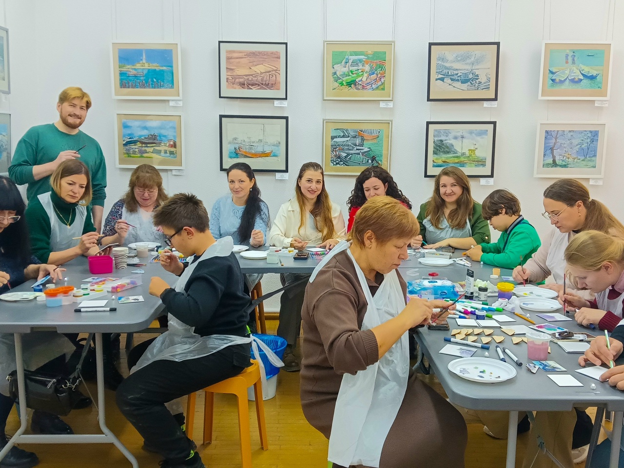 Под руководством научного сотрудника картинной галереи А.В. Шевцова, участники создавали изящные сувениры на зимнюю тему. Для вдохновения были предложены три этюда заслуженного художника РСФСР П.М. Гречишкина «Зимний лес» 1969 года, «Зима в октябре» и «Стожок зимой» 1970 года. При помощи гуаши или маркеров гости работали над созданием собственного произведения на выбор: деревянной броши и миниатюрного холстика на магните. Второе творческое мероприятие собрало 13 художников-любителей: из Ставропольской краевой библиотеки для слепых и слабовидящих им. В.В. Маяковского, будущих врачей из Москвы и просто творческих посетителей. Самые юные участники – Андрей и Иван – справились раньше всех. Они выбрали «Стожок зимой» и постарались передать хрустальное настроение горного этюда. Следующие мастер-классы пройдут 20 и 21 декабря 2025 года. г. Ставрополь, ул. Морозова, 12 8 (8652) 75-33-45, 8 (8652) 75-33-89