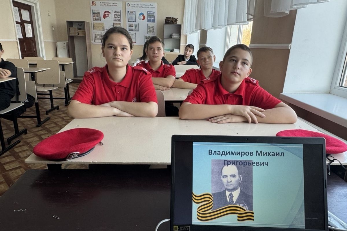 Активисты, представители Юнармии и школьники почтили память земляка, возложив цветы на могилу героя. Для юнармейцев прошел урок мужества, посвящённый жизни и боевому пути героя.