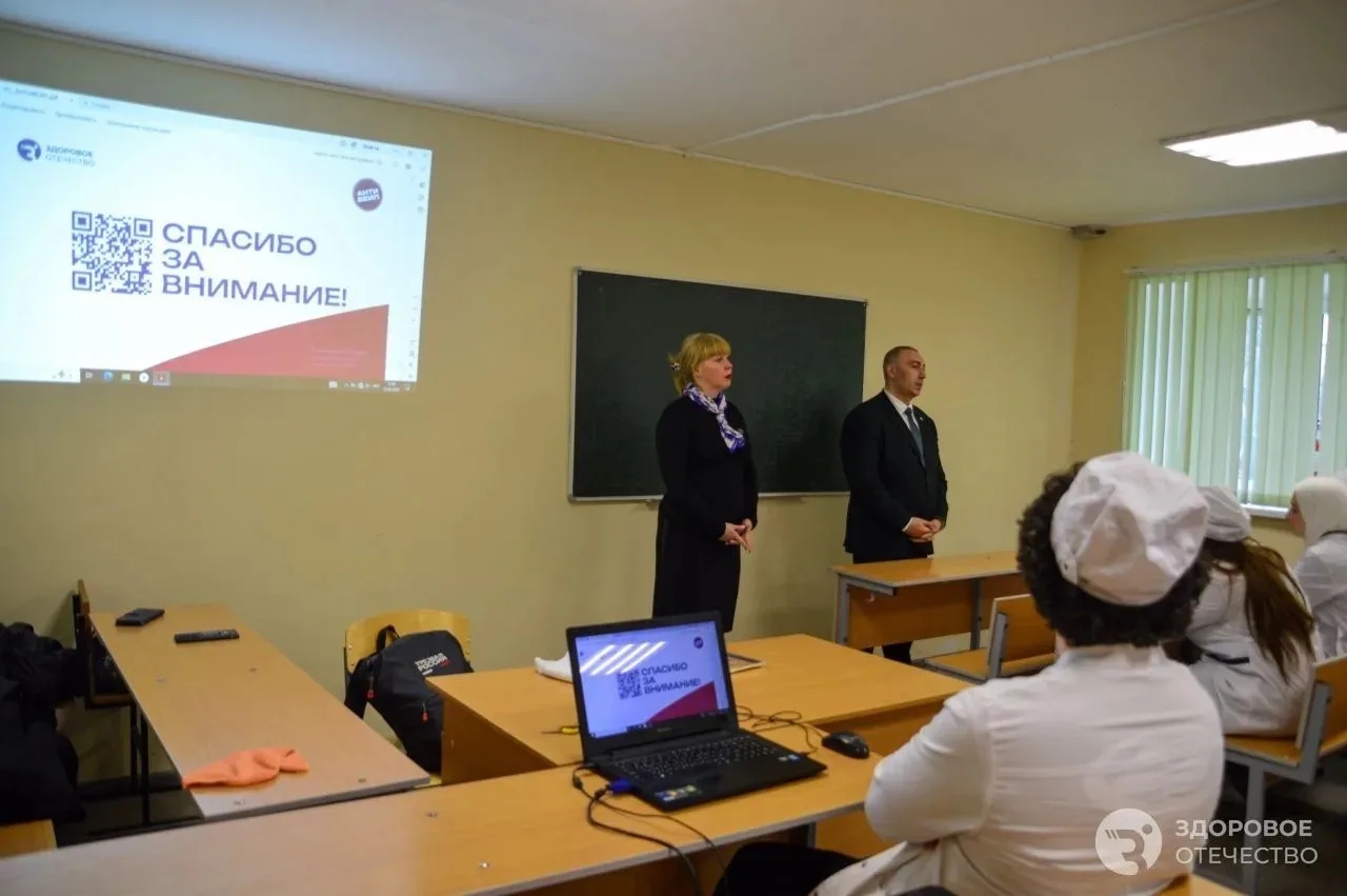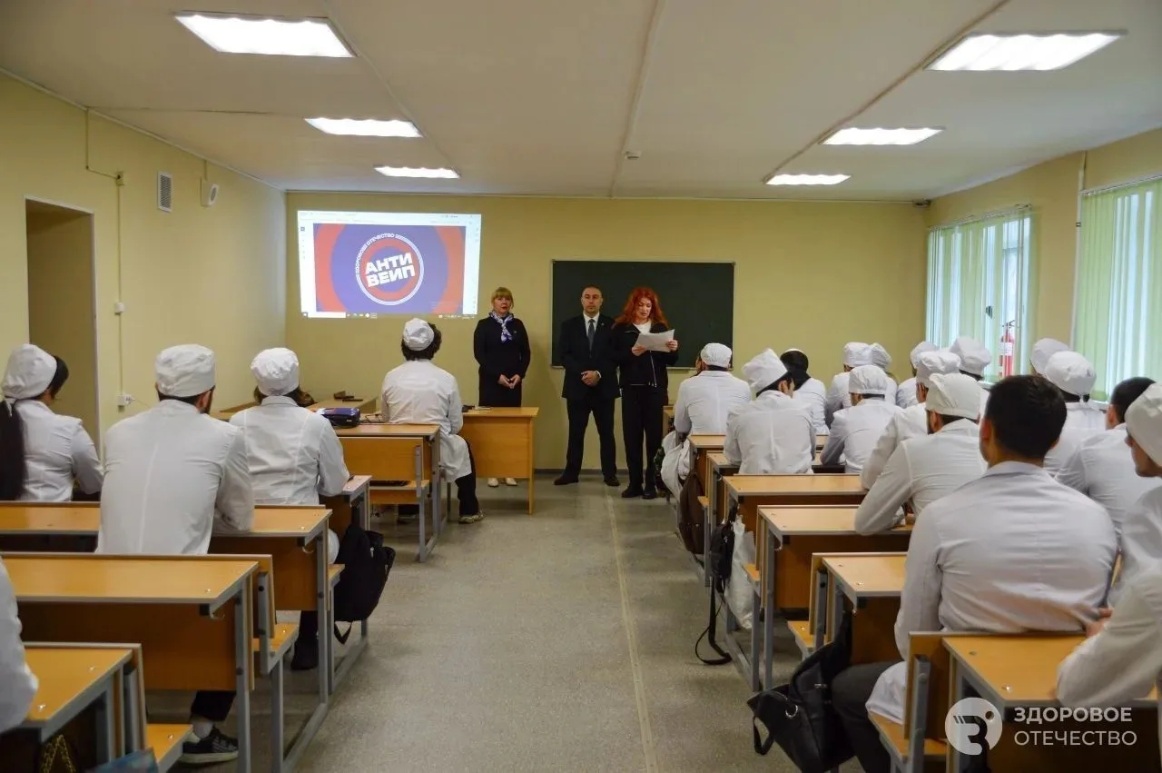 Студенты первого курса Медицинского колледжа Пятигорского медико‑фармацевтического института приняли участие во встрече с представителями регионального отделения движения «Здоровое Отечество». С лекцией о здоровом образе жизни и профилактике употребления вейпов выступили руководитель отделения Елена Малькова и депутат городской Думы Артур Мартиросян. В рамках мероприятия был представлен федеральный проект «АНТИВЕЙП». В ходе оживленной дискуссии участники обсудили социальные и психологические причины формирования вредных привычек, среди которых были названы: поиск ярких эмоций, стремление соответствовать окружению, способы преодоления стресса и тяга к новому опыту. В качестве позитивной альтернативы участники выделили занятия спортом, позволяющие получить заряд энергии и положительные эмоции без вреда для здоровья.
