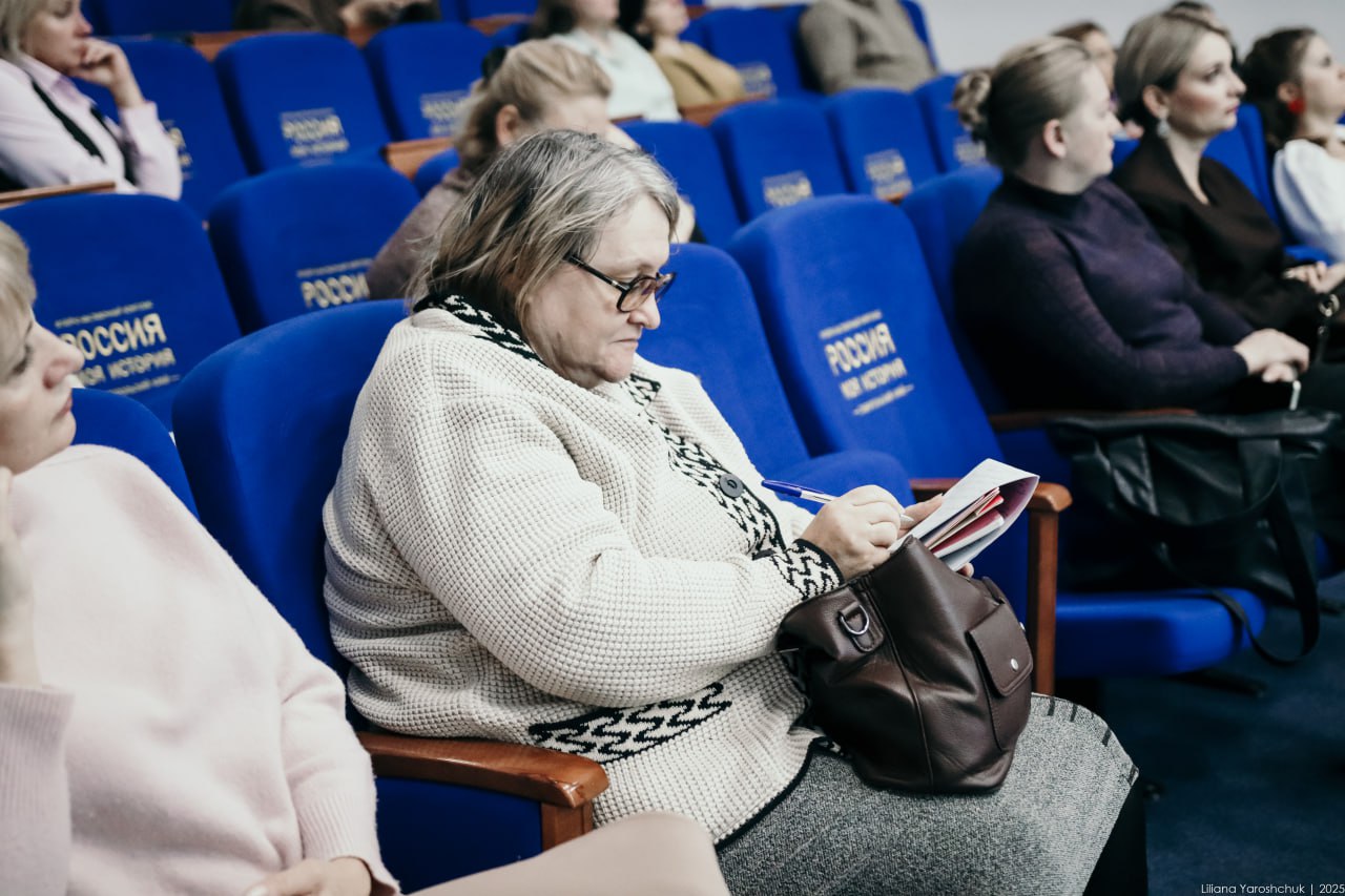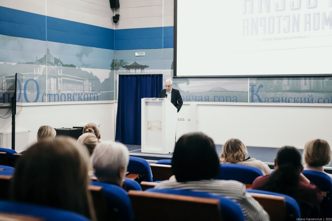 На встрече научный сотрудник комплекса Игорь Карташев представил педагогам из школ края опыт создания мультимедийных выставок и документальных фильмов о событиях Великой Отечественной войны на Ставрополье. Участники смогли увидеть уникальные кадры кинохроники и познакомиться с результатами исследований, воплощённых в современных музейных форматах.