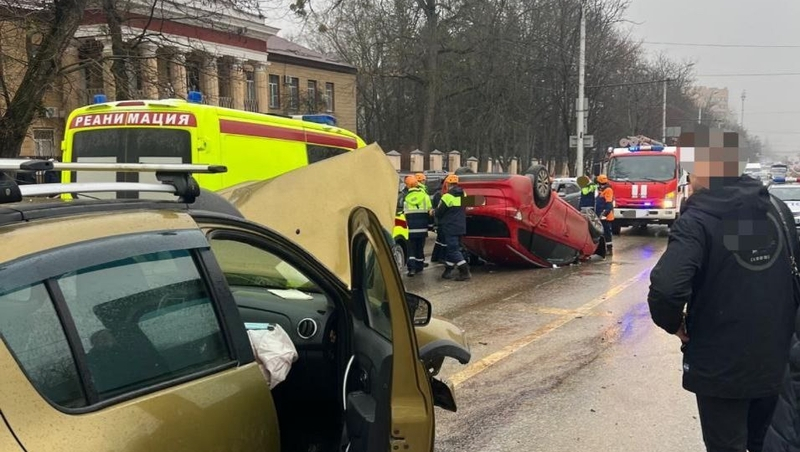 На улице Ломоносова в Ставрополе водитель автомобиля Renault проехал на запрещающий сигнал светофора и врезался в Kia, которая после столкновения перевернулась. В результате аварии в больницу доставлены три человека.