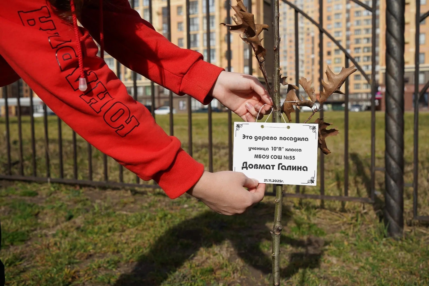 К одной из таких экологических акций присоединились юные ставропольцы – ученики школы №55. - Ребята дружно вышли на «зеленый» субботник и высадили на территории родной школы 55 краснолистных дубов. Мероприятие приурочили к 80-летию Победы в Великой Отечественной войне. Активистам помогали юнармейцы, спортсмены, педагоги и родители. Теперь на территории школы будет своя аллея, посвященная подвигу наших предков, – рассказал глава Ставрополя Иван Ульянченко. Для ребят участие в высадке деревьев – еще и личный вклад в благоустройство школы. На каждом саженце разместили табличку с именем ученика, который выкопал лунку и бережно посадил молодое растение на новое место. Доброе дело поддержало министерство природных ресурсов края.