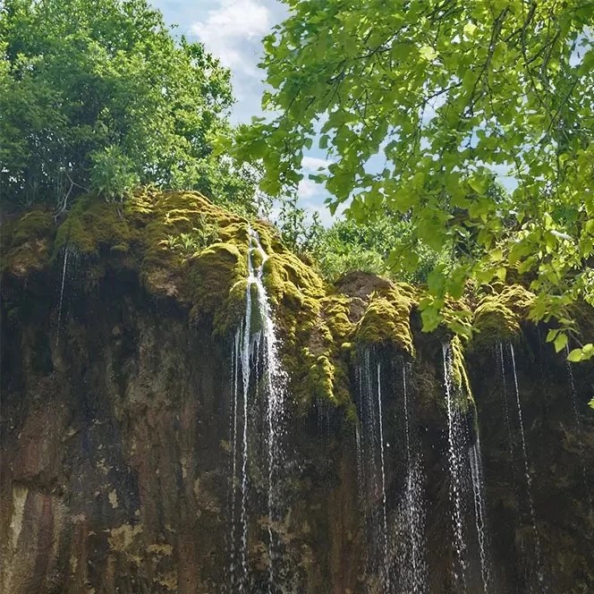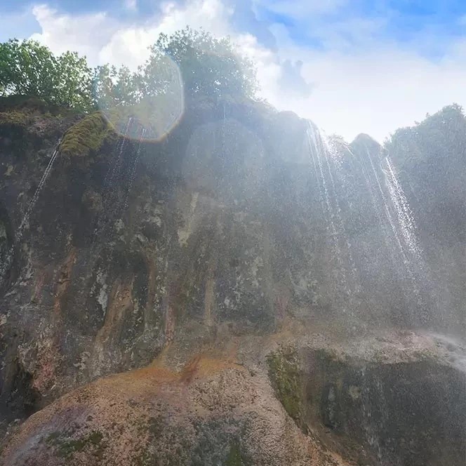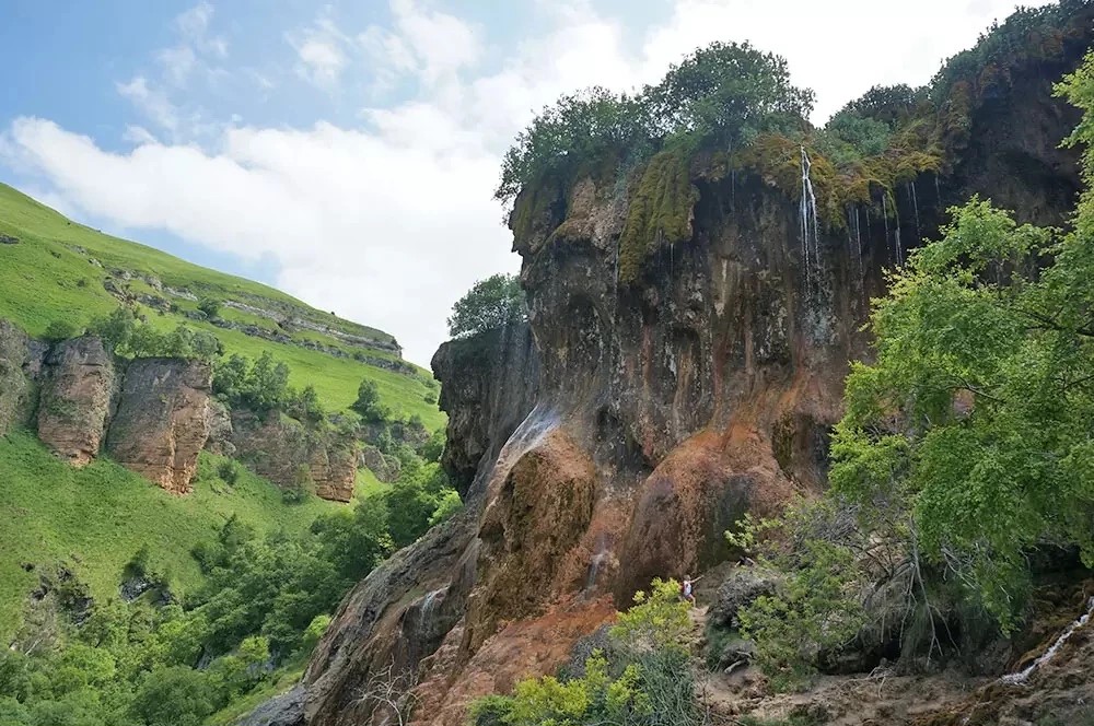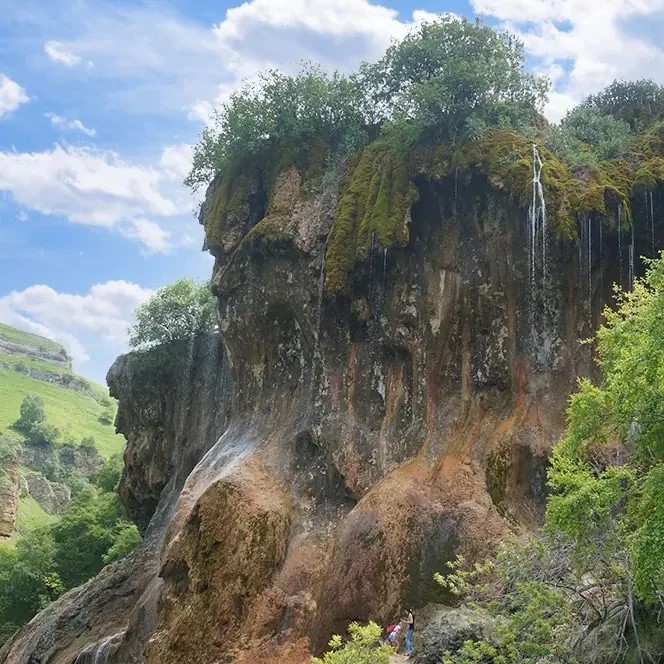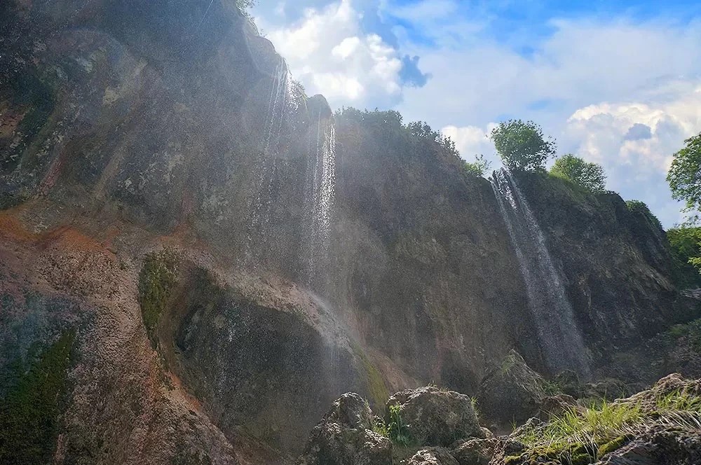 Со стороны он действительно напоминает корону: вода не падает единым потоком, а распадается на множество линий. Именно поэтому местное название «Гедмыш» переводится как «семьдесят струй». В солнечную погоду всё это переливается и выглядит как декорации к фильму.
