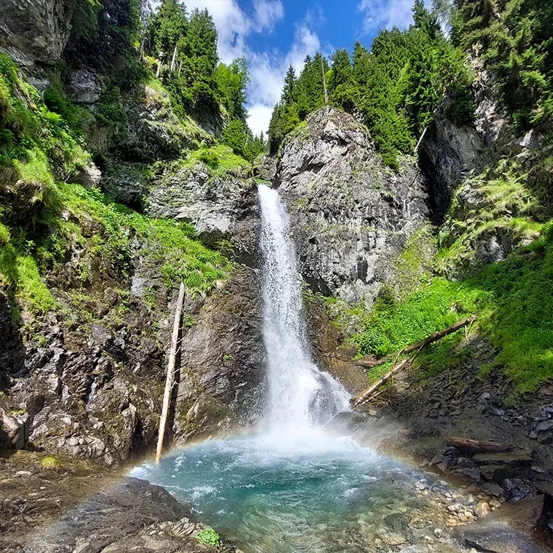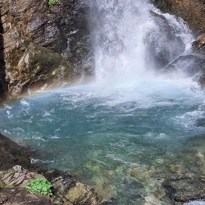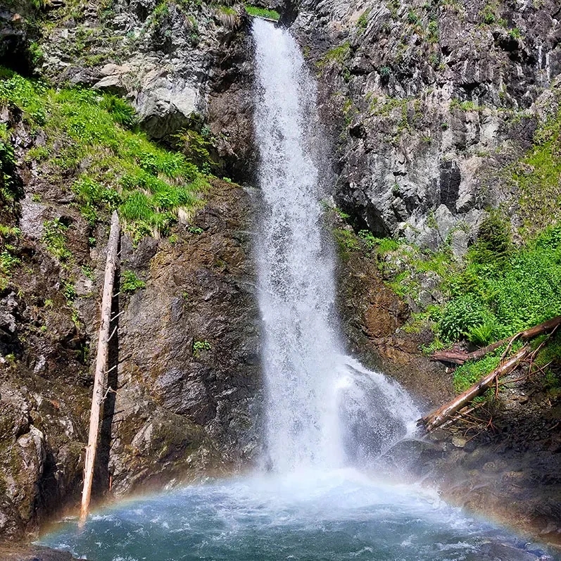Вода ледяная даже в жару, около +10°C. Купаются не все, но те, кто решается, запоминают это надолго.