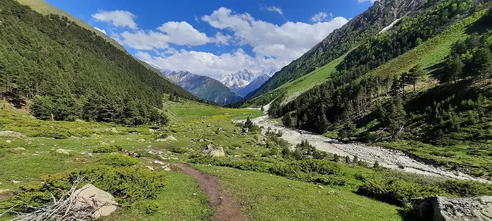 В ущелье Ирик-Чат, одном из самых живописных в Приэльбрусье, спрятаны песчаные «замки», созданные самой природой. Эти причудливые образования из жёлтого песчаника напоминают башни, грибы и фантастические дворцы. Свою форму они получили благодаря ветру, воде и перепадам температур. За тысячи лет стихии буквально «вылепили» из скалы необычные фигуры, которые выглядят как рукотворные. Маршрут к ним начинается из поселка Эльбрус и проходит через альпийские луга, сосновые леса и вдоль бурной реки Ирик. По пути встречаются нарзанные источники — холодная минеральная вода бьет прямо из земли. Тропа постепенно набирает высоту и открывает виды на Главный Кавказский хребет. В хорошую погоду видны вершины Шхельда, Ушба и сам Эльбрус. После песчаных замков маршрут продолжается к водопаду, а при желании — дальше, в сторону Джилы-Су. Часто по ущелью свободно гуляют табуны горных лошадей, добавляя месту особую атмосферу. Что важно знать: Длина маршрута: 12,8 км Время: 6–7 часов Перепад высот: 1780–2360 м Стоимость: бесплатно Сезон: круглый год