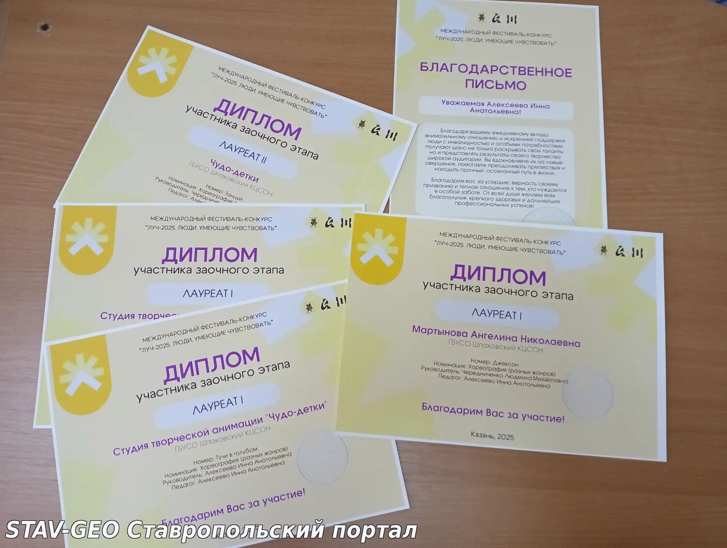 Воспитанники студии "Чудо детки" Шпаковского центра социального обслуживания продемонстрировали свое мастерство на фестивале-конкурсе "Луч - 2025", приняв в нем участие в дистанционном формате. Юные артисты с блеском представили свои хореографические номера, покорив жюри своей энергией и артистизмом. Ребята представили хореографические композиции: «Тучи в голубом», «Смуглянка», «Танцуй!», «Джексон». По итогам конкурса участники студии были удостоены заслуженных наград - дипломов лауреатов первой степени. «Это достижение - результат упорного труда самих ребят, их наставника и, конечно же, поддержки родителей. Дистанционный формат не стал преградой для демонстрации талантов, а лишь подчеркнул креативность и целеустремленность юных артистов. Поздравляем "Чудо деток" с очередной победой и желаем им дальнейших творческих успехов и новых ярких выступлений»,- говорит директор центра Людмила Чередниченко.