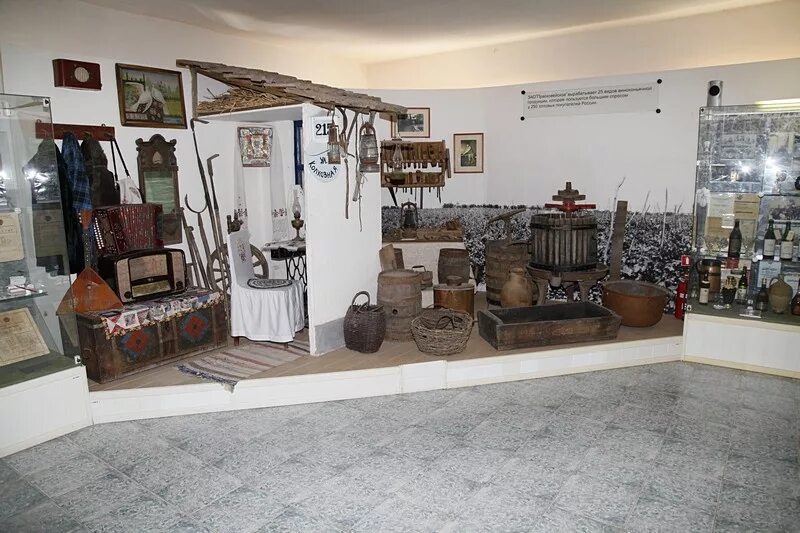 Экспозиция музея выстроена в хронологическом порядке с древнейших времен по сегодняшний день. Размещена в стационарных витринах (13 шт.) и подиумах (10 шт.). В музее наглядно и подробно представлены предметы палеонтологии, захоронения эпохи бронзы, предметы материальной культуры средневековья, сельскохозяйственный инвентарь конца XIX – начала XX в., документы, фотографии первых лет Советской власти, характеризующих колхозное строительство на Прикумье, а также материалы о старейших на Ставрополье сельскохозяйственном учебном заведении – Прасковейском винтехникуме и Прасковейском винзаводе, основанном в 1898 г. и т. д.